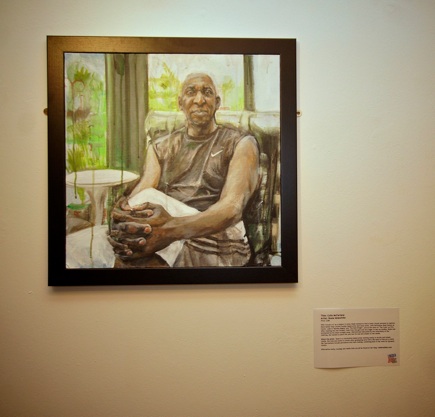 With 'Lincoln A-Z' as a subject in mind, I wanted to find a lively Lincoln persona to capture. None better than Lincoln/London based actor and voice artist, Colin McFarlane (best known as Comm Loeb in Batman Begins, Dark Knight and as the voice of the Cube on ITV). After meeting the man himself, fresh from the gym and very eager to see my studies, I was enchanted by his charm straight away. Warmed and welcomed by the informality of the meeting, I wanted to paint him just how he was and unseen to the media.